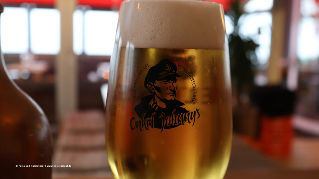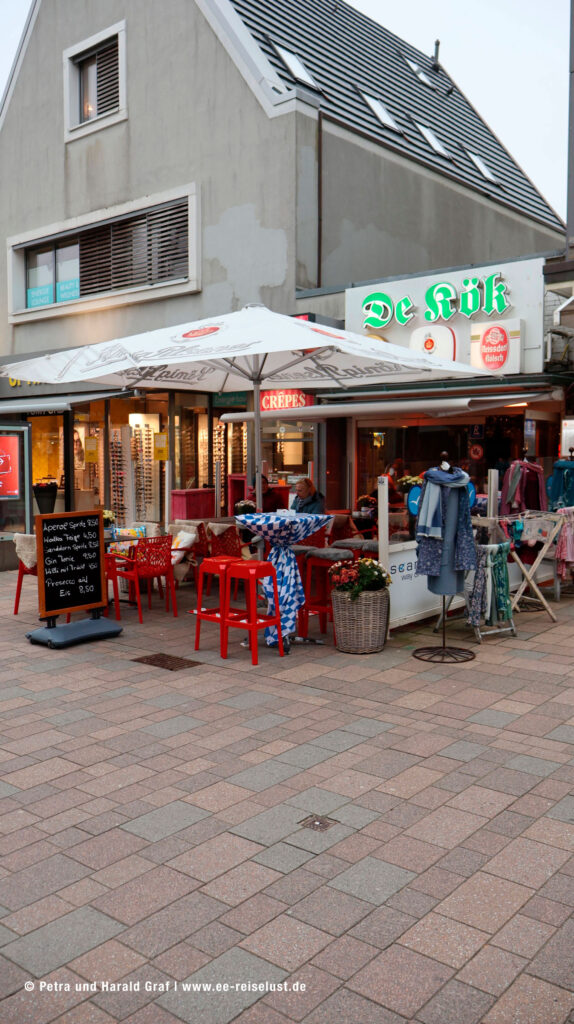 Auf dem Weg zur Bushaltestelle kamen wir noch an zwei urigen Lokalitäten vorbei. Im „De Kök“ fühlten wir uns nach München, zur Oktoberfestzeit versetzt, weiß-blaue Wimpel und etliches Dekor hing von der Decke. Kaffee und Grog waren gut und wärmten wieder innerlich. Irgendwie war es cool dort.