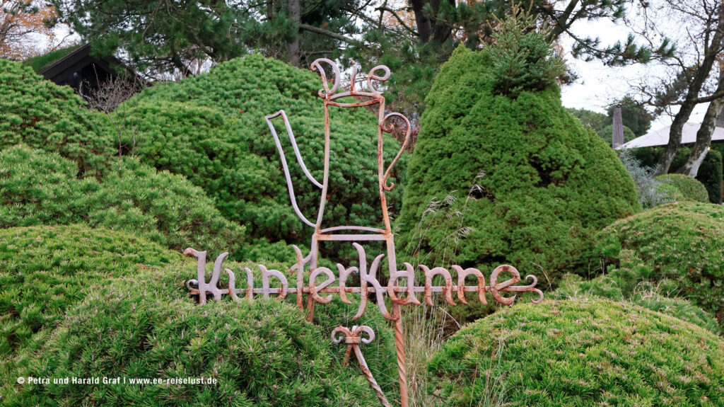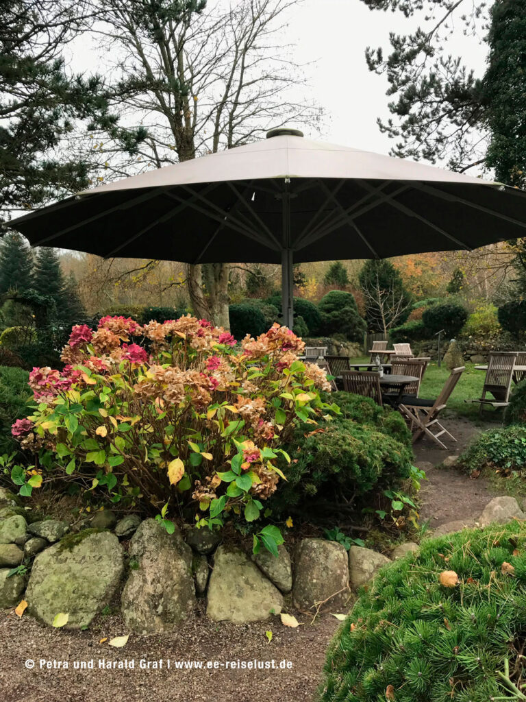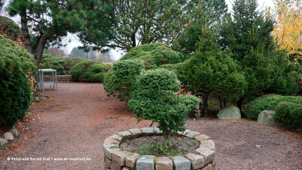 Bis hierhin war es ein knapper Kilometer. Langsam meldete sich wieder einmal ein Hüngerchen (trotz Aprikosenkuchen ) und wir machten uns auf den Weg zur Bushaltestelle in Kampen. Wieder den Wattweg zurück. Wir unterbrachen kurz den direkten Weg, um uns den Avenariuspark, mitten im Dorfkern von Kampen, anzusehen. Er wurde benannt nach Kampens‘ erstem Ehrenbürger – dem Verleger Ferdinand Avenarius. Es ist ein wunderschöner Park mit einem Marmor-Buddha auf einem Sockel und einem Dorfweiher. Ein kleiner Steg führt auf ein Podest, von dem aus man die Vögel auf den Inseln des Weihers beobachten kann.