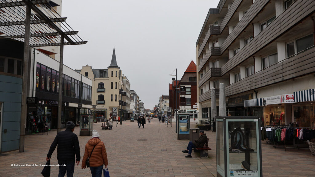 Mit leichtem Muskelkater machten wir uns auf zum Frühstück. Dieses Mal bestellten wir Spiegeleier. Heute sollte es gemütlicher zugehen. Nur am Strand nach Westerland laufen und mit dem Bus zurück. Die Fußgängerzone – Einkaufsmeile – in Westerland stand auf dem Programm. Auf dem Weg dorthin sahen wir etwas Kurioses. Zwei Frauen zogen sich plötzlich bis zum Badeanzug aus, nahmen sich an der Hand und liefen ins Meer, während eine dritte alles mit dem Handy filmte. Und das bei drei oder vier Grad. Muss ich nicht haben. Habe mich aber solidarisch erklärt und ein bisschen für sie gefroren. Lange blieben sie aber nicht im Wasser.