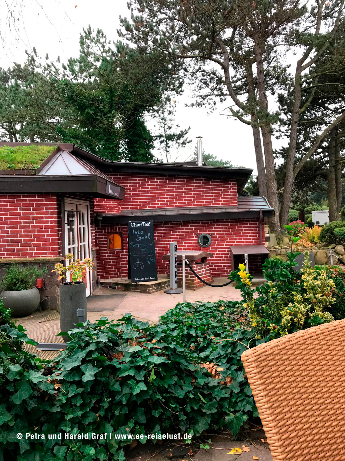 Wir umrundeten den Teich. Die Friesenkapelle, die wir uns anschauen wollten, war leider geschlossen, wie die meisten Kirchen mittlerweile. Auf dem Heimweg kamen wir an dem Café „Sylter Domizil“ vorbei.